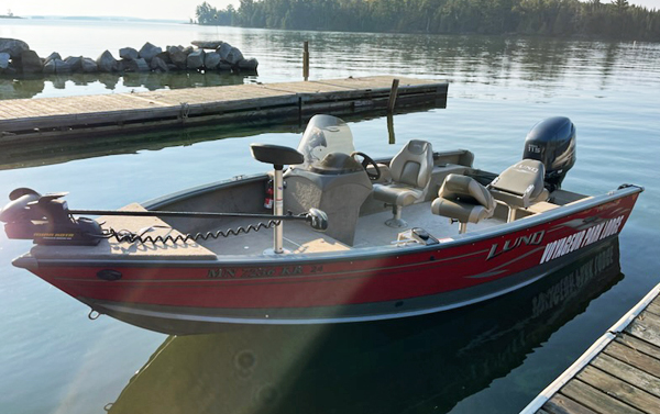 $165 per day, $750 per week. 40hp 4-stroke Yamaha motor with electric start, 3 pedestal seats, full floors, navigational lights, and top of the line Lowrance Elite FS 7 touchscreen that has sonar, GPS, side and down imaging and 1ft contours of lake.  A great fishing boat!!
